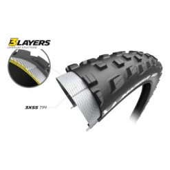 De zachte rubbersamenstelling biedt voldoende grip in elke situatie, terwijl het resistente karkas zorgt voor een goede bescherming tegen ongewenste lekke banden tijdens de volgende rit.